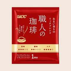 「ビターな味わいのクラシックブレンド」が1番気に入りました。 【1番好きだったブレンド】ビターな味わいのクラシックブレンド【研究メモ】このたびは、UCCラボ 5,000人で作る! 全国研究プロジェクト に当選させて頂き、UCC上島珈琲株式会社様より、職人の珈琲のワンドリップコーヒー4種類を頂きました。ありがとうございました。 「ビターな味わいのクラシ