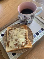 納豆チーズトースト お昼にご飯を炊き忘れ💦納豆チーズトーストにしたのでお供にコーヒーを☕️