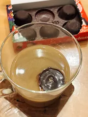 先日@サケモクさんが入れて飲んでいた雪見だいふく🔗 冷凍庫にピノがあったので、あ!って思い、カフェラテに入れてみました。 ひっくり返って底が上に😱混ぜると、チョコが溶けてバニラモカみたいな味わいに。うま〜♪ただ、見た目がテンション上がら無いけど、コーヒーとアイスの組み合わせ。いい