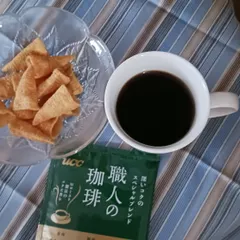 おかわり あっさり味のお菓子に、スペシャルブレンドをブラックで。 食べ過ぎないようにお皿に出しても結局おかわりしてしまうー😂