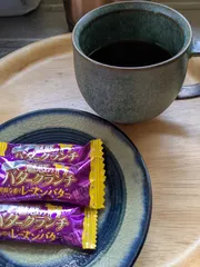 朝のおやつ&コーヒー☕ なんだか夜向きの色合いですが、おやつは魅惑の味でコーヒーに合いました♫初おろしのカップで、コーヒーも美味し〜💮