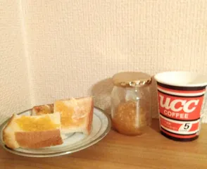 ジャムトースト やっと甘くなってきた夏ミカンジャムコーヒーは熱々