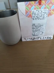 卒業式の夜、娘からプレゼントをもらいました。娘「プレゼント。安売りコーナーにあったけど。」裏を見たら素敵なメッセージ‼️とても嬉しかったです。卒業式では涙は出なかったけど、泣いてしまいました。パッケージ 写メ撮ったけど捨てられなさそうです。