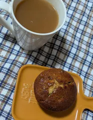 マフィンと一緒に 濃い味のマフィンだったので、コーヒーも濃い目に淹れるべきでしたが、美味しくいただきました!