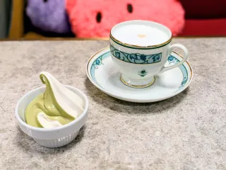 今日はランチについていた抹茶ソフトミックスとカフェラテをいただきました✨️