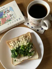 クリームチーズのミルクコーヒーと、BLTとチーズのサンドイッチ、めちゃくちゃ美味しいです🎵😆