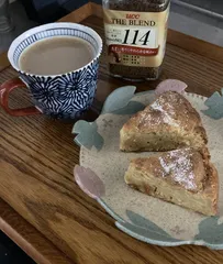 りんごケーキと一緒に りんご一個使って林檎ケーキ作りました。スライスしたけど角切りの方がりんご感味わえたかなと思ったけど美味しくできて満足!おやつに食べました。