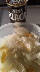 コーヒー、、モーニングです。 家庭菜園で採れた大根を甘酢漬けにしました。ブラックコーヒーとの相性もバッチリですよ。