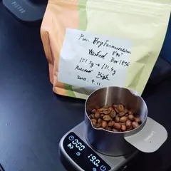 中国雲南珈琲その1 Today's Latte and Drip2025.09.12 🫘Puer Dry Fermentation Washed High Roast ラテの方はアートミスって溢した😁酸味は強調なくて、非常に飲みやすいコーヒーだなという印象、きな粉みたいな味がする&nbs