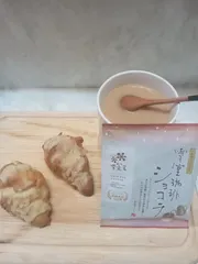 朝ごはん🧇 クロワッサンにメロンパンペーストをぬって🍈 コーヒーは、ショコラコーヒー☕パッケージに雪がちらついていて、冬にぴったりのコーヒーです⛄️☃️