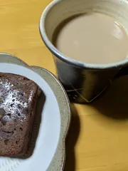 夜のおやつとの一杯 今朝の作り置きですが、ユー◯イムの焼き菓子と、100歳以上のピアノの音色と共に頂きます♫