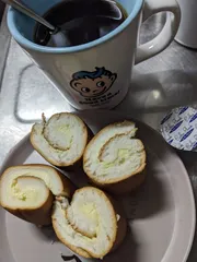 今日のおやつは山崎ぱんの「クリームあふれる生カヌレ【ラムレーズン】」 カヌレにラムレーズン好きには、たまらない商品です😊カヌレにカリッと感はないですが、クリームと合っていて満足でした。 イライラ続きの私は、ちょっと苦みの勝った珈琲で、少し鎮火されました😁