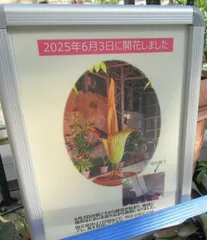 世界一大きな花とコーヒー 温室の最後のあたりには熱帯スイレンなどの咲く池がありそこに、世界一大きな花がさくというでかい鉢が置かれていました。 どのくらいの大きさかというと高さ3メートル、直径1メートルの花!! 今年6月3日のお昼ごろから開花しはじめ夜には、たくさんのギャラリーに囲まれて開花が終了。そうそう