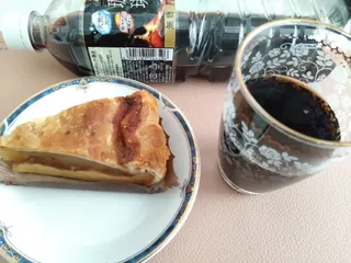 窓を開けると金木犀の香りが漂ってきます 近くの小学校に大きな金木犀の木があります、癒されますね~ アイスコーヒー常温と共に青森県産リンゴのアップルパイを頂きました
