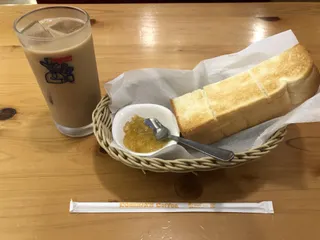 早くに起きて子供の合宿へ送り出し、その後少しでも涼しいうちにと思い水やりと草取りをしたら汗だくに💦あっという間に2時間頑張ってたので、モーニングに来ちゃいました😅 季節限定の瀬戸内レモンマーマレードジャムにアイスオーレも加糖にして疲れた体も癒されました😉