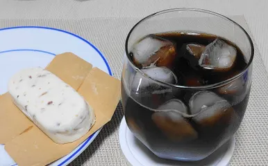 カッサータと 今日のオヤツは、アイスコーヒーとカッサータです。 クリームチーズにドライフルーツとナッツが入ったチーズケーキで、以前流行ったバスクチーズケーキよりもサッパリとしていて食べやすいです。