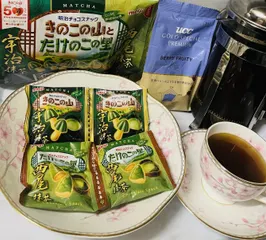 上げてなかったいつかのおうちカフェ☕️ 宇治抹茶 きのこの里 西尾抹茶 たけのこの里コーヒー☕️はuccのゴールドスペシャルプレミアム ベリーフルーティ このコーヒー豆本当にフルーティで美味しくて好き😍💕☕️今までは抹茶大好きだから抹茶を見るととりあえずすぐに買ってたけど…まさかの中国が抹茶に力を入