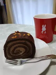 おやつに、ショコラロールとホットコーヒーを頂きました。