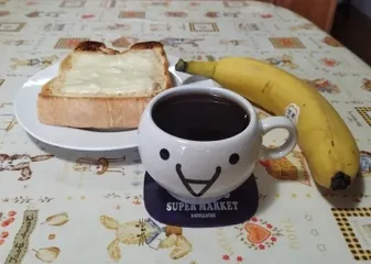朝の定番メニュー🍞🍌 コーヒーとチーズトーストにバナナ1本。朝の定番メニューです! 今朝は、ツナマヨをサンドしてみました。