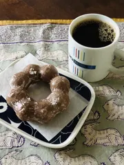 投稿し忘れたので昨日のおやつです!🙏ミスドさんのGODIVAコラボドーナツ🍩🥰旦那さんと半分ずつ食べました😋コーヒーによく合いました👍