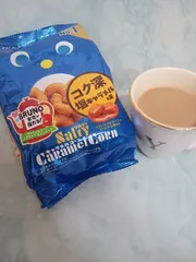 コーヒーのお供にキャラメルコーン。キャラメルコーンは昨日の残りです。2日に分けて食べた意思の強さをご理解いただきたい。