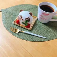 🐼🍰×☕️ coffee time☕️パンダ🐼のケーキ🍰中はスポンジ、クリーム、いちご🍓でショートケーキみたいです♡