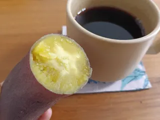 炊飯器で作ったホクホクの蒸し芋のお供に、ブラックコーヒー(^^)ホッと温まりました〜♡