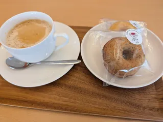 ジェラートや可愛いパフェで有名なカフェですが閉店間際に行ったのでパフェは注文出来ず(泣)ラテと可愛い焼きドーナツを🍩