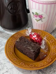 手作りいただきました🍫 オレンジピール入りチョコケーキ手作りされたものをいただきました(^^)料理教室の先生をされてるので本格的💖
