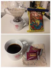 今朝は母の病院からの帰り、お買い物をしたりバタバタ 帰ったら御年賀の芋きんつばで一服 珈琲はタ🐻ーズのエチオピアモカ、シングルサーブです。 昨年から、ちょっと好きになったモカ 15gの珈琲を、湯量240㏄で3分待つ。 何かしてると3分なんて、あっという間だけど、珈琲の出来上がりを待つ3分は長く感じ