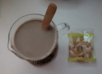 BLACK派だけど、朝は牛乳珈琲 昨夜、久しぶりに夜更かししすぎて、とりあえず、牛乳珈琲とユーハイムのパイビスブローチで一服です。