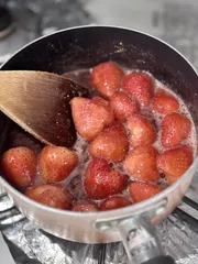 フルーティな豆があるのならば... コーヒーとジャムも合うのではないでしょうか?以前「よにのちゃんねる」で豆がイチゴ🍓の香りがするコーヒーを飲んでいて(甘いわけではなく豆に何かしてました、なんだっけな?)それがなんだか頭に残っていたんです。お買い得品のイチゴを買ったらかなりぐちゃぐちゃだったので、ジャムにしてみました。アイスコーヒーと