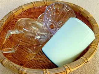 珈琲器具専用にしている水切り籠。カップや器具に『ごちそうさま』と『ありがとう』を添えて… まぁ、洗い物をためてしまうこともあるけれど、段取りよく片付け出来た時は『偉いぞ』と自分を褒めたりもします😊