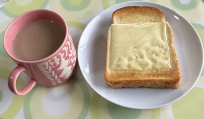 チーズトースト 朝ごはんカフェオレとチーズトーストこれが王道のベアリングだったかも
