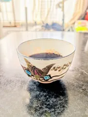 UCCメロウキャラメルを抹茶碗で。